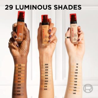 کرم پودر لورآل اینفالیبل ۳۲ ساعته با SPF 25 و ویتامین C، یک فاندیشن ماندگار با پوشش متوسط تا کامل است که جلوهای مات طبیعی و بدون ماسیدگی ایجاد میکند. این محصول تا ۳۲ ساعت روی پوست میماند، چربی را کنترل میکند و برای پوستهای معمولی، مختلط و چرب مناسب است. در رنگهای ۱۱۰، ۱۲۰، ۱۴۰، ۱۴۵ و ۲۰۰ عرضه میشود و برای استفاده روزمره تا آرایش حرفهای عالی است.