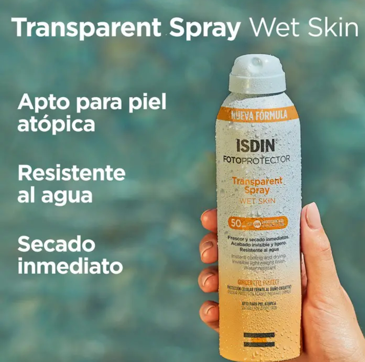 اسپری بدن ضدآفتاب ایزدین مدل Transparent Wet Skin SPF 50 یکی از جدیدترین محصولات محافظتی برند اسپانیایی ISDIN است که با فناوری نوآورانه Wet Skin طراحی شده و حتی بر روی پوست مرطوب نیز جذب میشود.