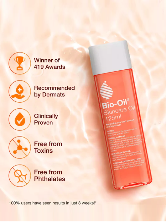 روغن بایو اویل Bio-Oil در حجم‌های ۱۲۵ و ۲۰۰ میل؛ مناسب کاهش ظاهر جای زخم، ترک پوستی، لک‌ها و افزایش نرمی و لطافت پوست. با جذب سریع و حاوی ترکیبات گیاهی. مناسب انواع پوست.