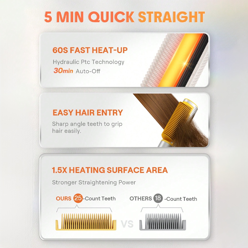 این برس حرارتی با طراحی سهبعدی ضد سوختگی و پشت منحنی، به شما امکان میدهد بدون تماس مستقیم سطح داغ با پوست سر یا گردن، موها را حالت دهید. دندانههای زاویهدار برس، حداکثر تماس را با تار مو ایجاد کرده و همزمان از گرهخوردگی و کشیدگی مو جلوگیری میکنند.