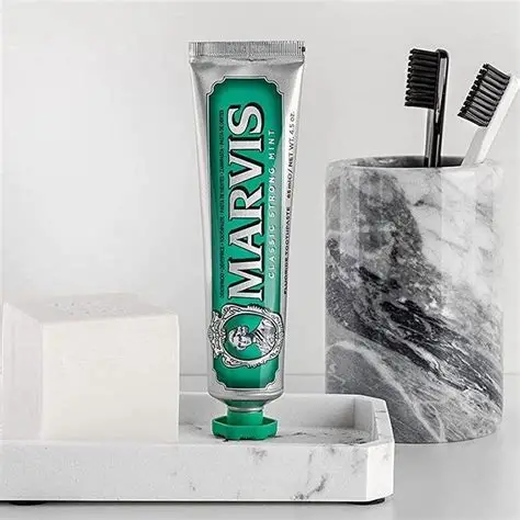 خمیردندان مارویس مدل Classic Strong Mint محصولی لوکس و کلاسیک از برند ایتالیایی Marvis است که تجربهای تازه و مطبوع از مسواک زدن ارائه میدهد.