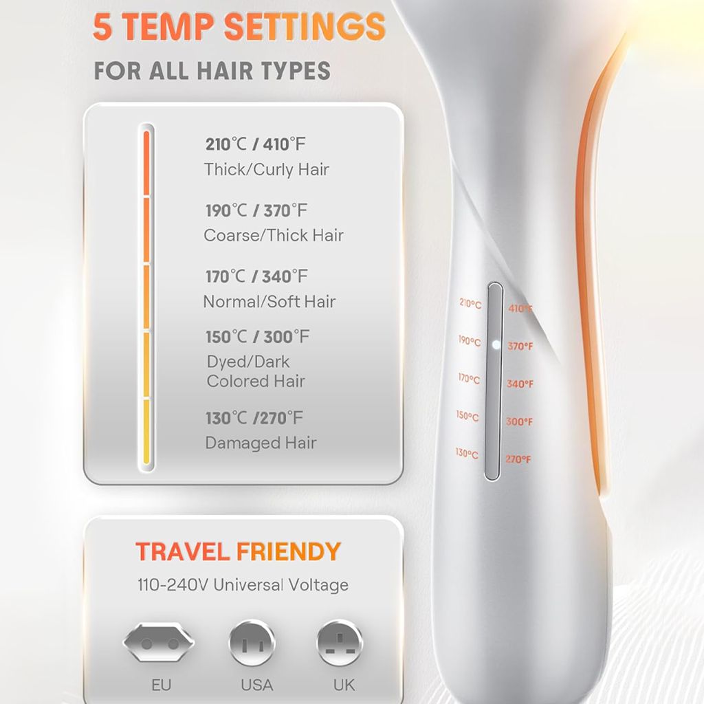 - قابلیت تنظیم حرارت مناسب موهای نازک تا ضخیم