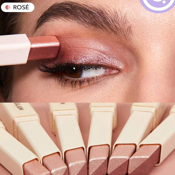 سایه استیکی دو رنگ شیگلم دارای دو سر مات و براق با پیگمنت بالا و بافت کرمی سبک است.
