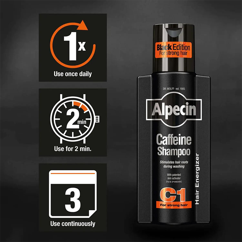 شامپو آلپسین C1 بلک ادیشن Alpecin Caffeine Shampoo C1 Black Edition نسخه‌ی قدرتمند و کلاسیک آلپسین برای مقابله مستقیم با ریزش مو است. فرمول حاوی کافئین غلیظ با نفوذ سریع به ریشه مو، فولیکول‌ها را فعال کرده و مانع ضعیف شدن موها می‌شود. این مدل مخصوص افرادی طراحی شده که دنبال اثر ضدریزش قوی بدون چرب شدن مو هستند. عرضه شده توسط ونوسان شاپ.