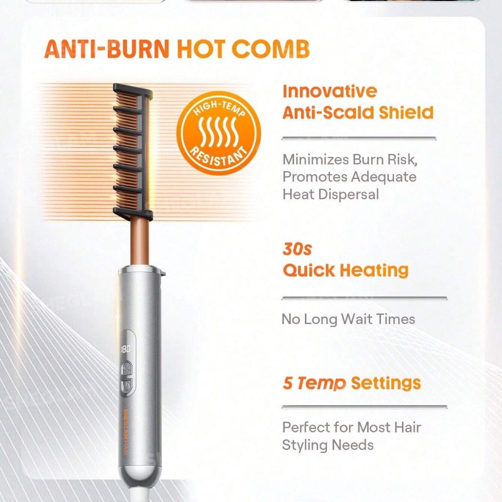 شانه برقی حرارتی ضد سوختگی شیگلم SHEGLAM Hair Anti-Burn Hot Comb یک ابزار ایمن و کاربردی برای صافکردن مو، کاهش وز و حالتدهی سریع است. مناسب انواع مو، با طراحی ضدسوختگی و گرمشدن یکنواخت، گزینهای عالی برای استفاده روزانه و حرفهای.