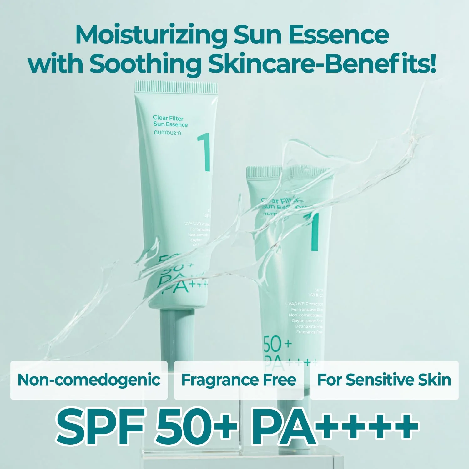 ضد آفتاب نامبوزین شماره 1 (Numbuzin No.1 Clear Filter Sun Essence) یک ضد آفتاب نوآورانه و چندکاره از برند محبوب کره‌ای Numbuzin است که با فناوری فیلتر UV بدون شکاف، محافظتی کامل، سبک و ملایم را برای پوست فراهم می‌کند.