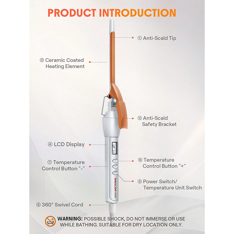 فرکننده مو شیگلم سایز 9 میلی متر | SHEGLAM 9mm Hair Curling Wand