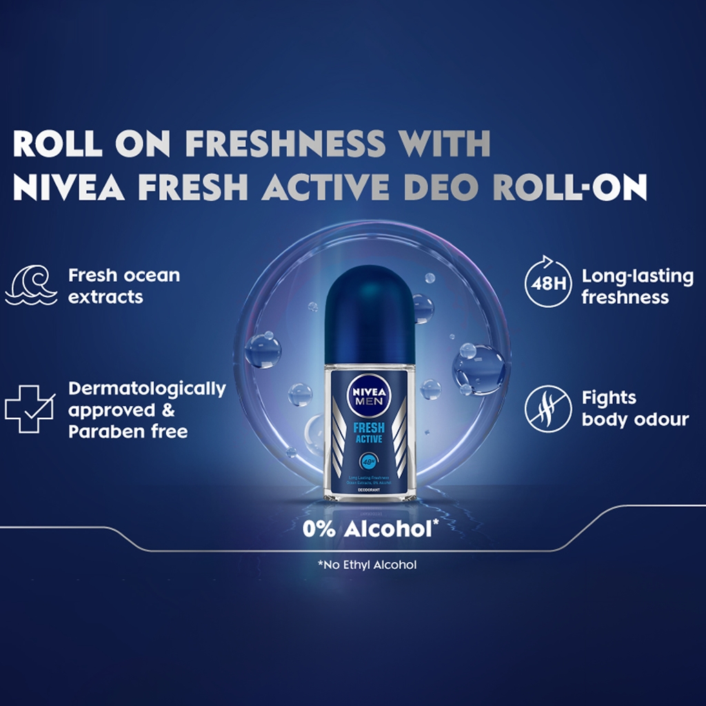 مام رول ضد تعریق مردانه نیوآ مدل Fresh Active حجم 50 میلی‌لیتر | Nivea Men Fresh Active Roll On