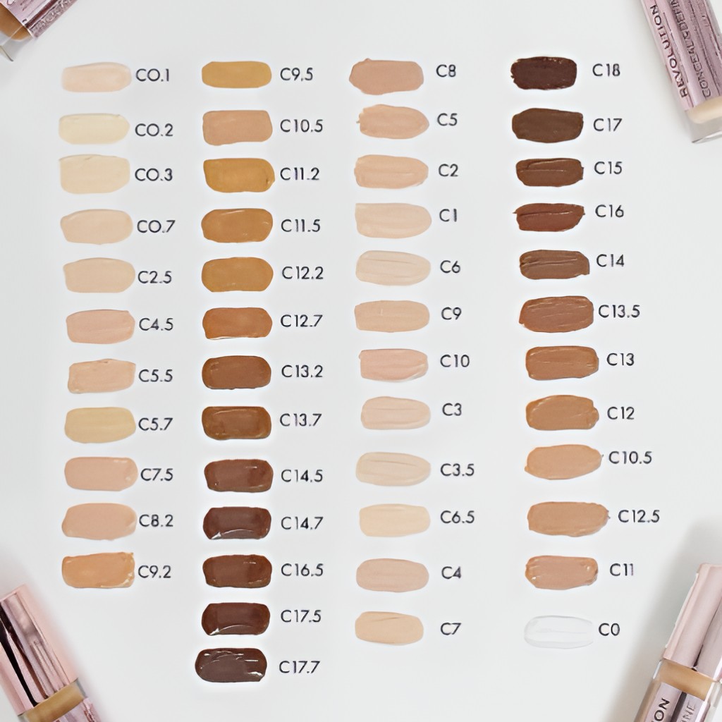 کانسیلر رولوشن Conceal & Define 💄 | پوشش کامل عیوب و منافذ پوست | پایان مات | موجود در 50 رنگ متنوع | دوام و ماندگاری طولانی | مناسب کانتور و هایلایتر | برند Makeup Revolution