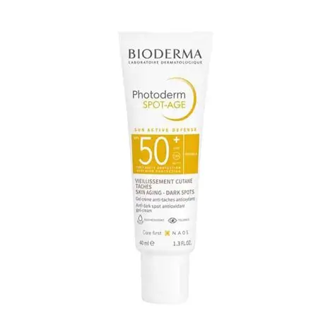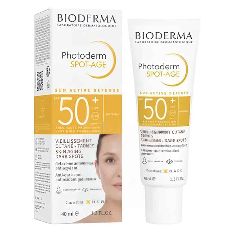 کرم ضد آفتاب بیودرما فوتودرم اسپات ایج (Bioderma Photoderm Spot-Age SPF50+) یکی از کاملترین و قویترین ضدآفتابهای درمانی برند بیودرما است که علاوه بر محافظت بسیار بالا در برابر اشعههای خورشید، به صورت تخصصی روی کاهش لک، جلوگیری از چروک و افزایش شادابی پوست کار میکند.